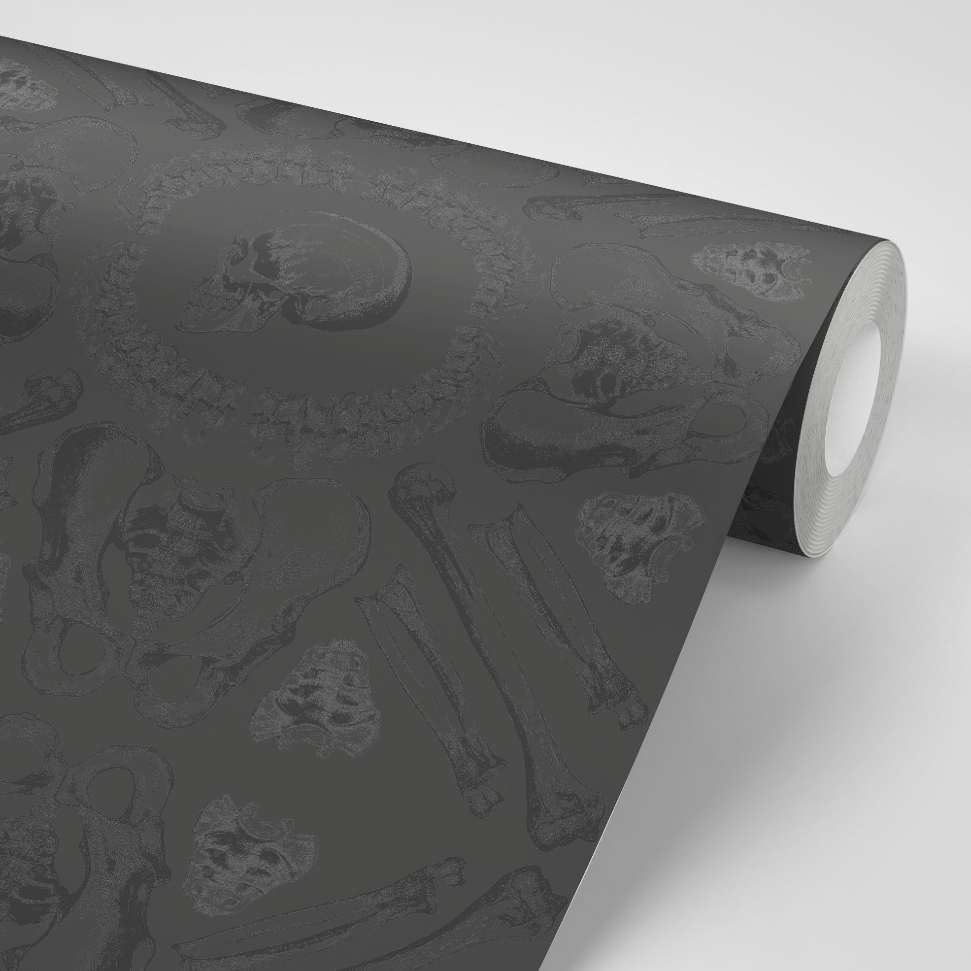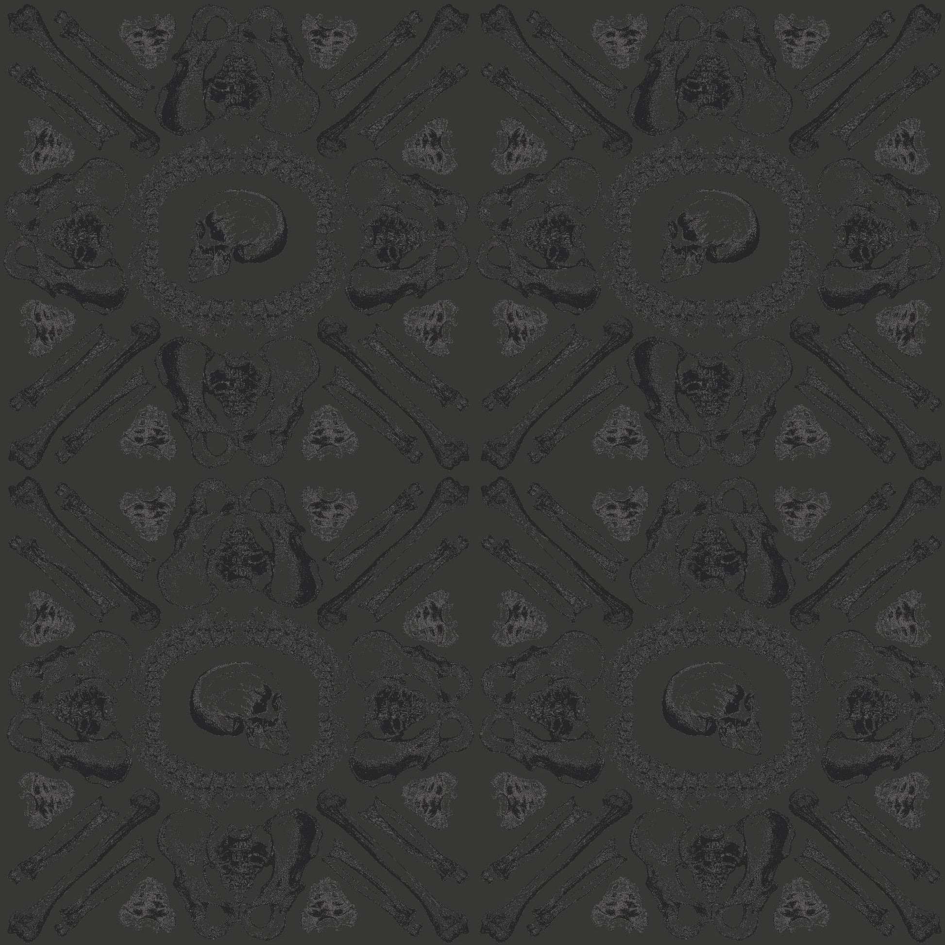 Bones is a hauntingly beautiful homage to the macabre and the mysterious, drawing inspiration from the eerie yet fascinating Capuchin Church in Rome. At first glance, it exudes the aura of a vintage pattern, but upon closer inspection, its true nature is revealed – an intricate composition of skeletal forms set against a dark, tone-on-tone background.