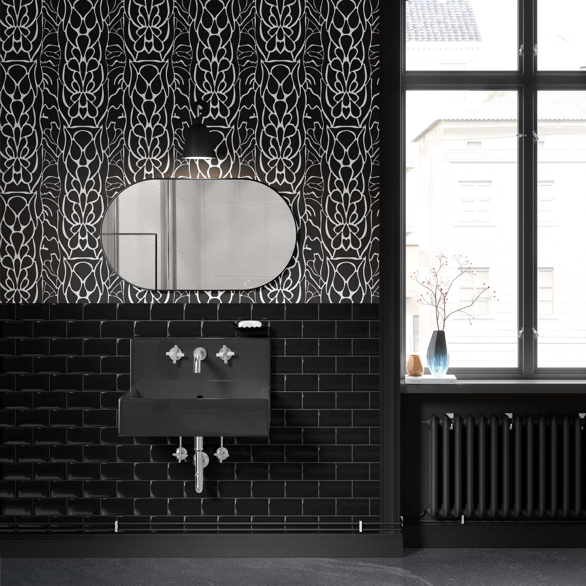Indulge in the depths of desire and be captivated by Fetish, with its bold black and white contrast and the symmetrical designs that embody a provocative beauty. Each detail of this striking design reflects a deep fixation, evoking a sense of intense desire and bold sophistication that resonates deeply.