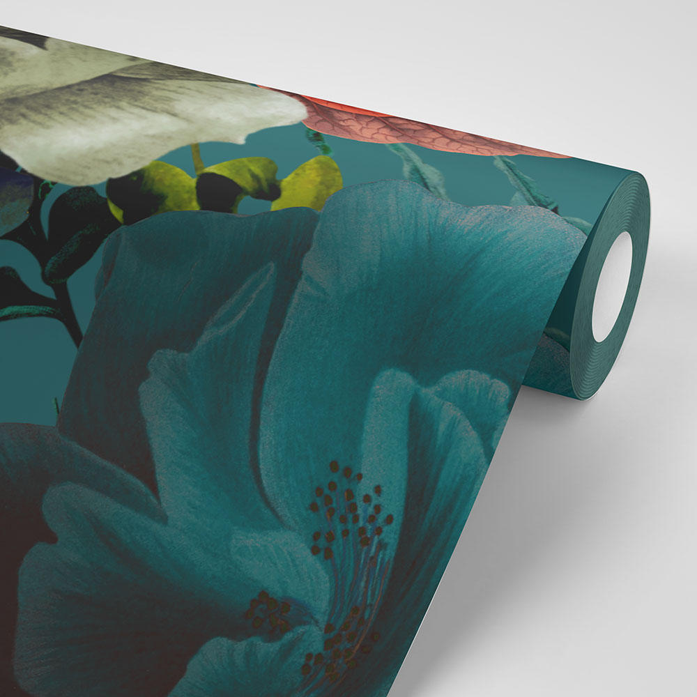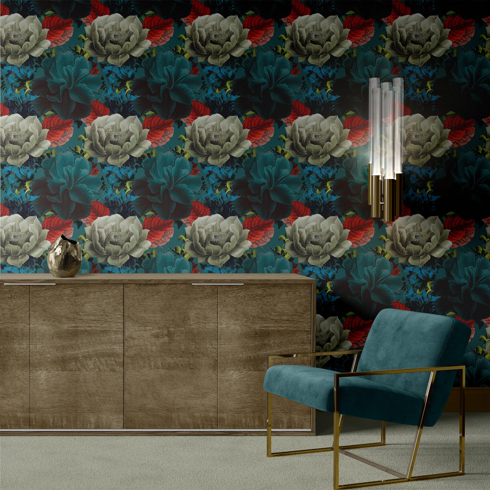 Vintage Floral Jewel features peonies and pairs perfectly with bold velvet furnishings. This unique design is sure to attract attention, adding an eye-catching touch of sophistication to your decor.