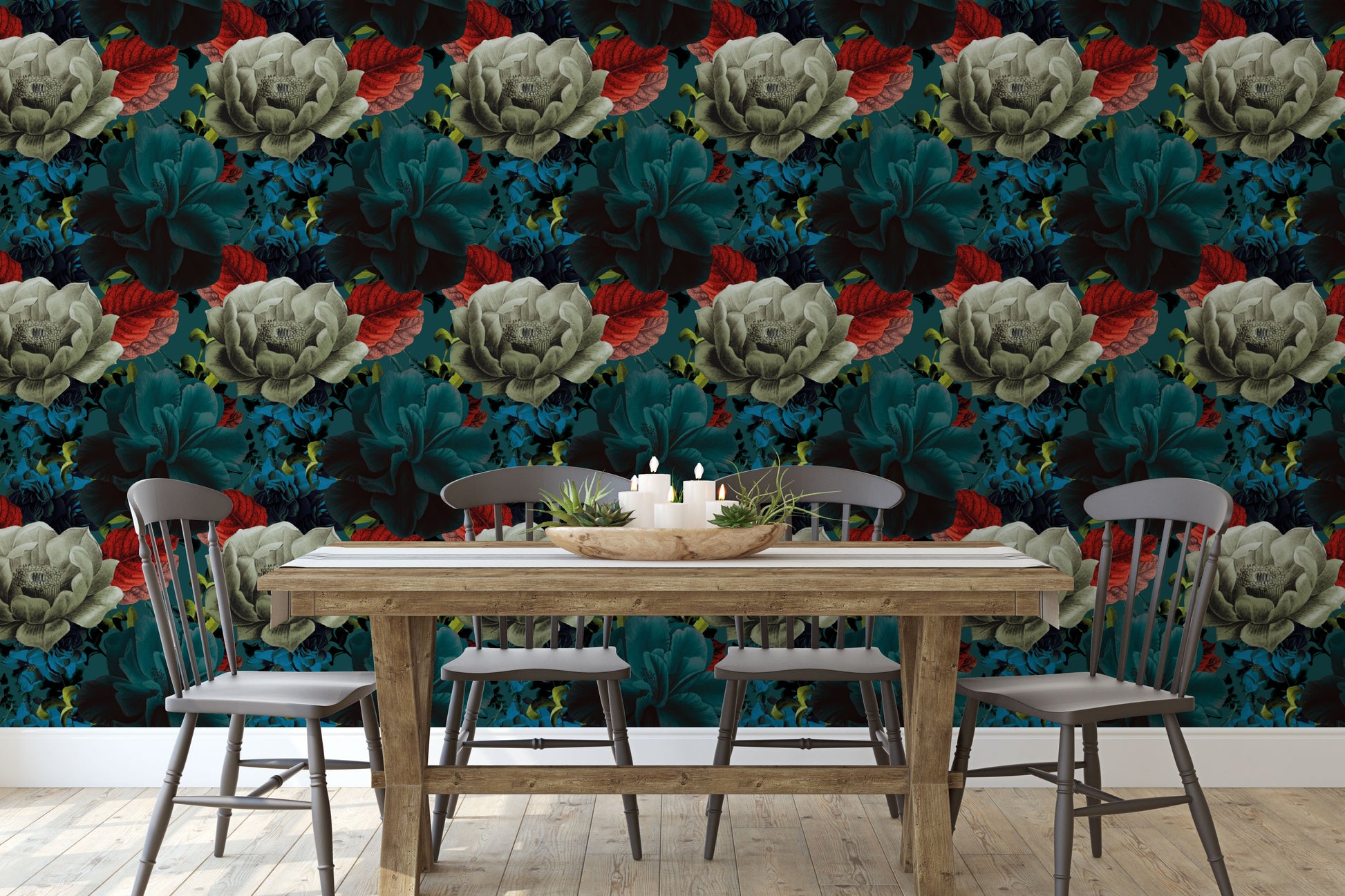 Vintage Floral Jewel features peonies and pairs perfectly with bold velvet furnishings. This unique design is sure to attract attention, adding an eye-catching touch of sophistication to your decor.