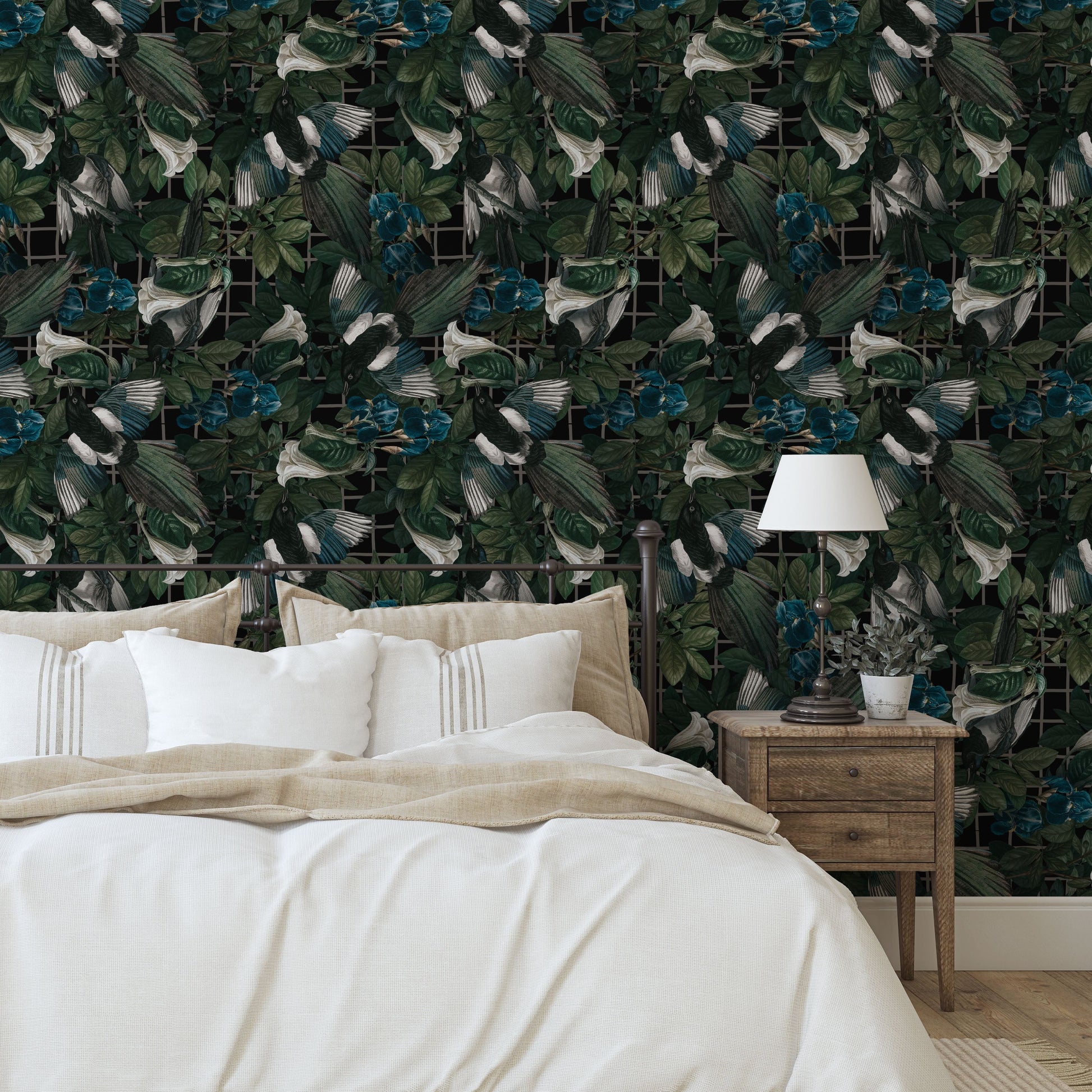 Caged Bird Magpie has the namesake bird flying amid irises, seemingly aware of the mesh cage which surrounds them. This unique design is a symbol of resilience and strength, reminding us that everything has beauty, even the broken parts.