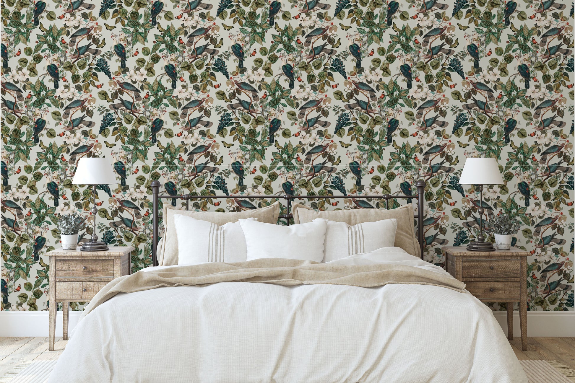 Look closely in our Caged Bird Pigeon design, and you will see leg bands on a few of the birds. These realistic banded design elements represent the symbol of freedom and escape, and will add an awe-inspiring touch to any room.