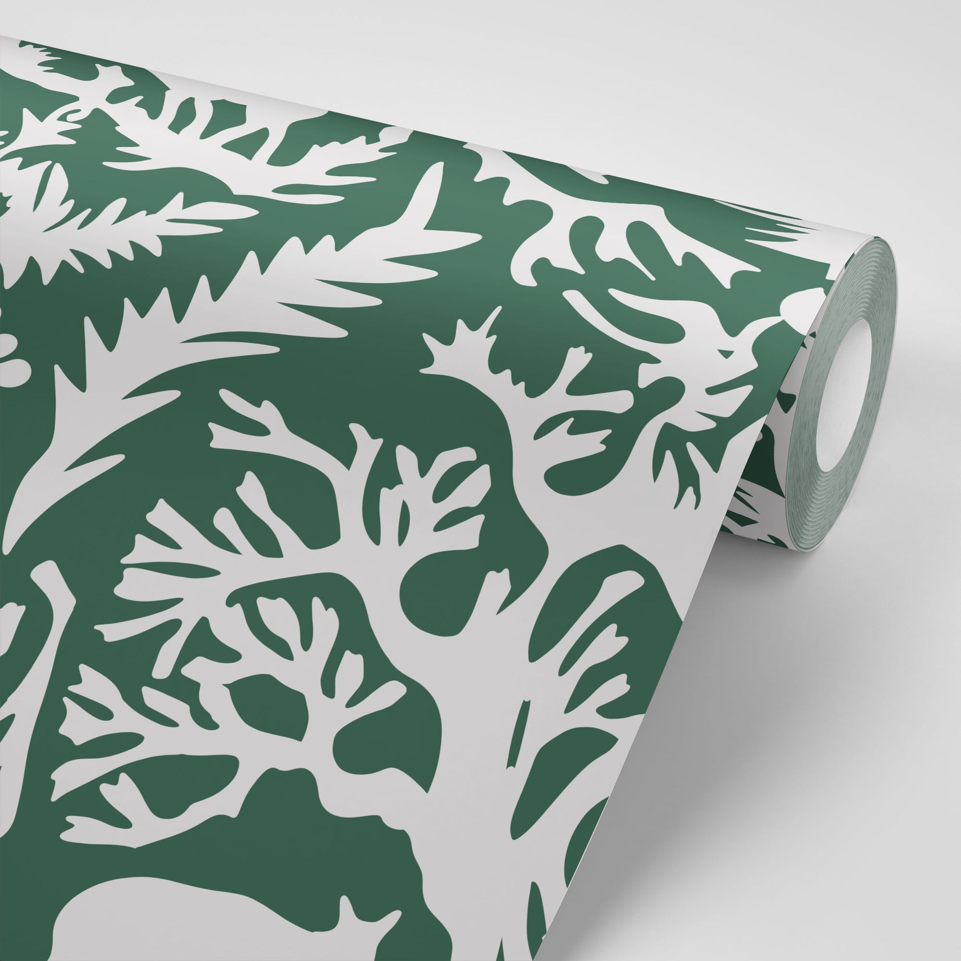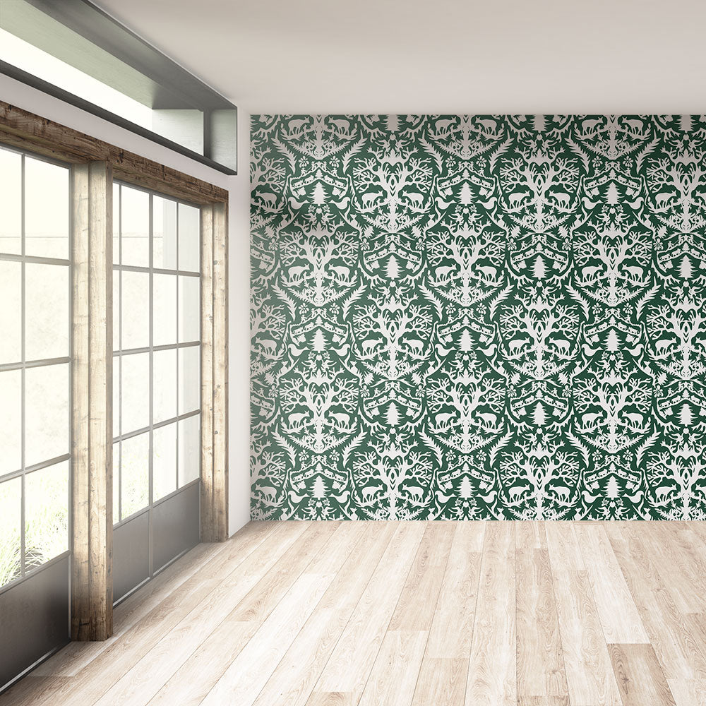 Silhouette luxury wallpaper is a testament to the enduring artistry of Swiss papercutting, offering a mesmerizing glimpse into the intricate craft of creating delicate scenes. Against a backdrop of deep forest green, this wallpaper breathes life into pastoral imagery, bringing the charm of countryside landscapes right into your interior space.