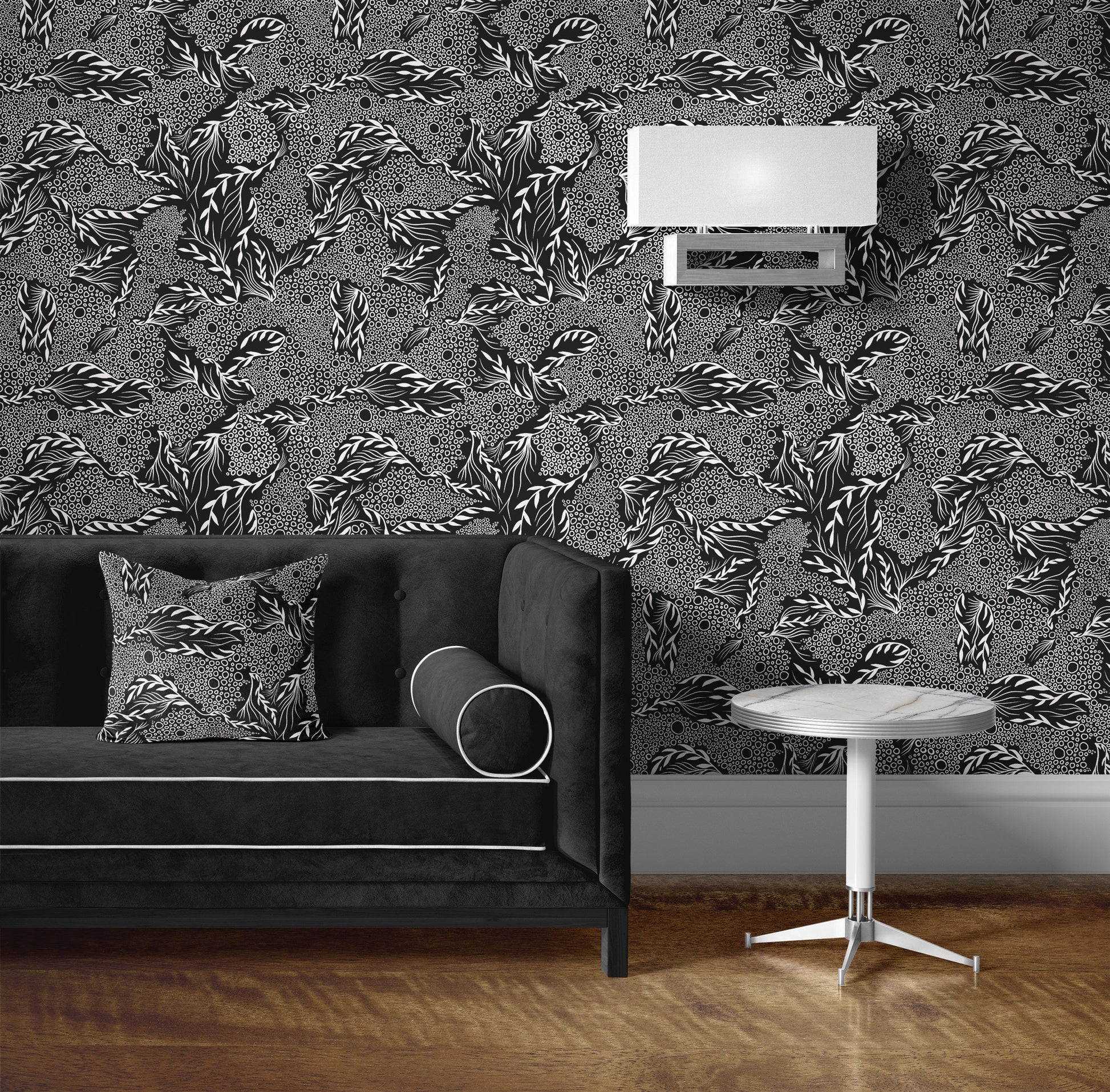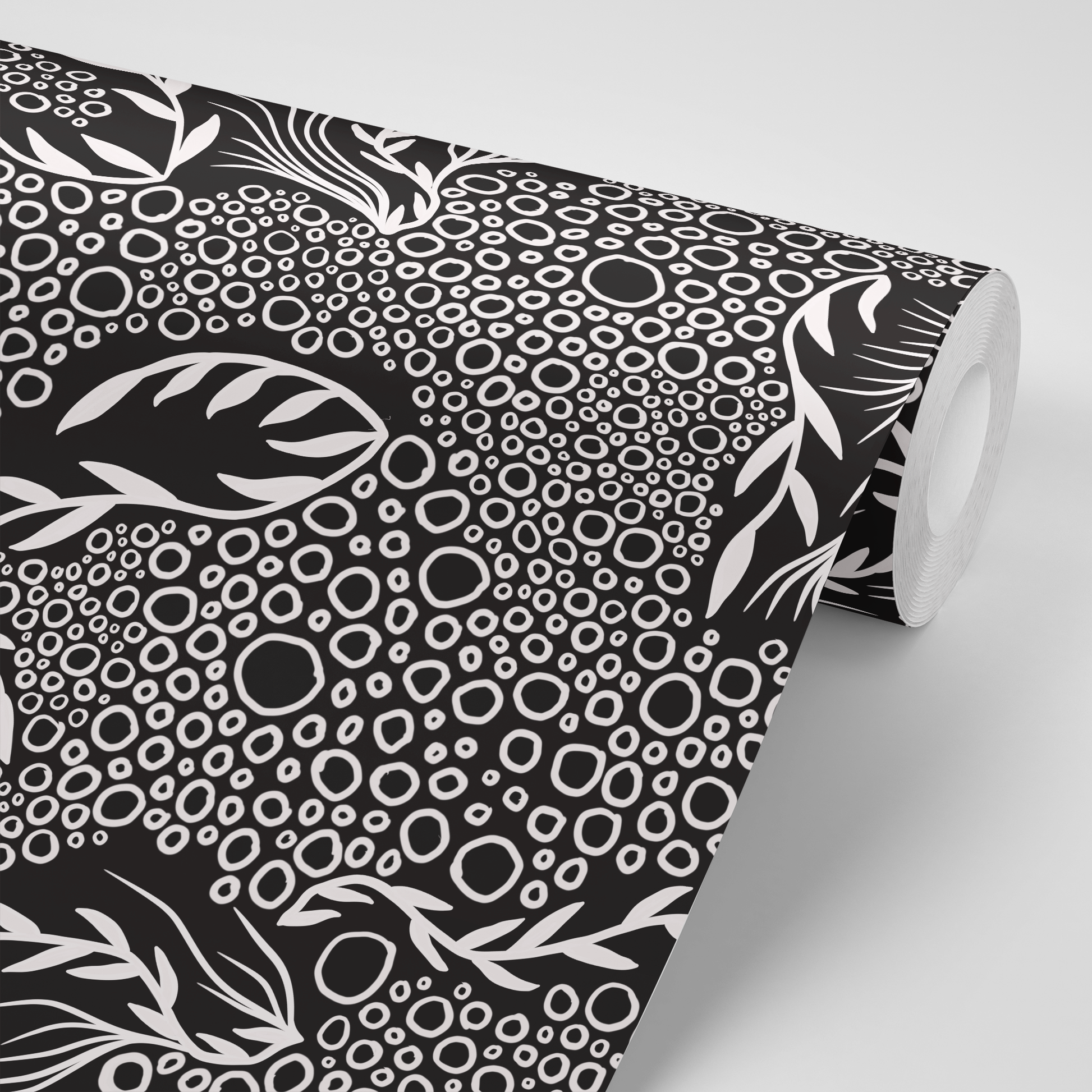 Vapours isn't just wallpaper; it's a portal to another realm, a blissful escape that beckons irresistibly. This captivating black and white pattern consumes your every thought, blending flowing organic shapes with intricate bubble-like circles. Its adaptable style, blending bohemian charm or modern sophistication, fuels this obsession.